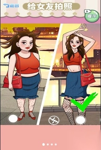 《帮她拍照》是一款极富趣味的休闲闯关类游戏,其核心玩法围绕着帮女友拍照展开,巧妙融合了眼力找茬、解谜挑战等多种模式。玩家能够在轻松愉悦的氛围里,同时体验到拍照构图与脑洞解谜的双重乐趣。在游戏过程中,玩家需要依据关卡任务,去寻觅合适的拍照角度,完成充满创意的拍摄挑战。从较为基础的角度挑选,到复杂的主题解谜,每一个关卡都洋溢着生活趣味,充满创意惊喜,为休闲玩家打造轻松解压的闯关经历。
