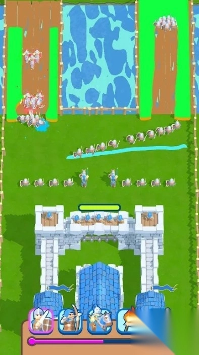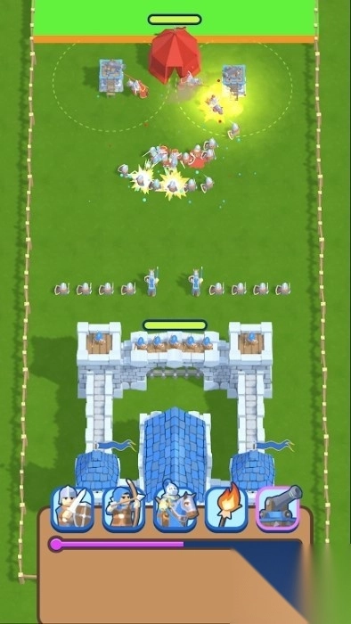 3、视觉效果简洁明快:整体画面呈现出简洁明快的风格,卡通化的视觉表现使得战斗过程充满轻松愉悦之感。精心绘制的士兵形象与武器特效生动且有趣,每当成功防御时,玩家既能收获视觉上的满足,又能在策略运用层面获得成就感,达成双重满足。