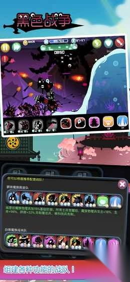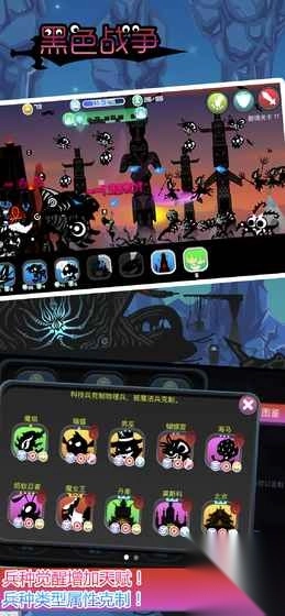 《黑色战争》是一款独具特色的单机策略战斗佳作,其画风呈现为新奇的剪影风格。游戏玩法魔性且极易上瘾,为玩家提供了丰富多样的兵种以供挑选。操作方式主要以轻松点击为主,游戏核心在于合理搭配战队,从而征服各个岛屿上的恶魔。玩家需要收集并升级兵种、城堡、道具这三大战队关键元素。值得一提的是,城堡和兵种拥有种族属性天赋以及类型克制这两大重要属性,玩家能够从中尽情感受征服岛屿带来的乐趣。