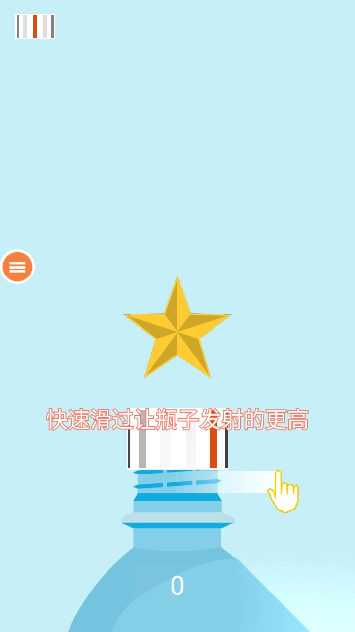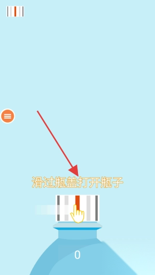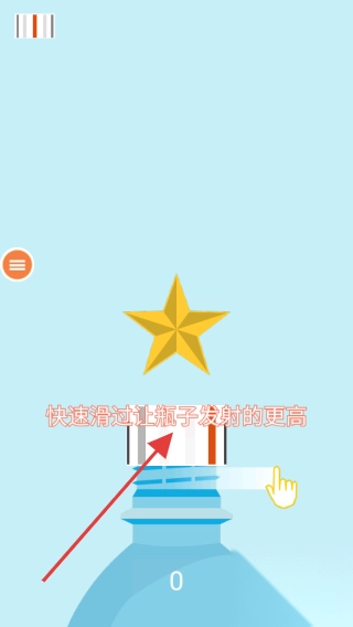 1、面对平放在简易桌面上的普通玻璃瓶,滑动手指蓄力,瞄准瓶盖准备发起首次挑战。