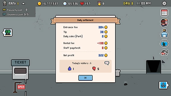 不过,你还能够通过增添公园内其他商店的属性,来提升利润收集。多样且丰富的玩法系统,为玩家带来了更多选择。
