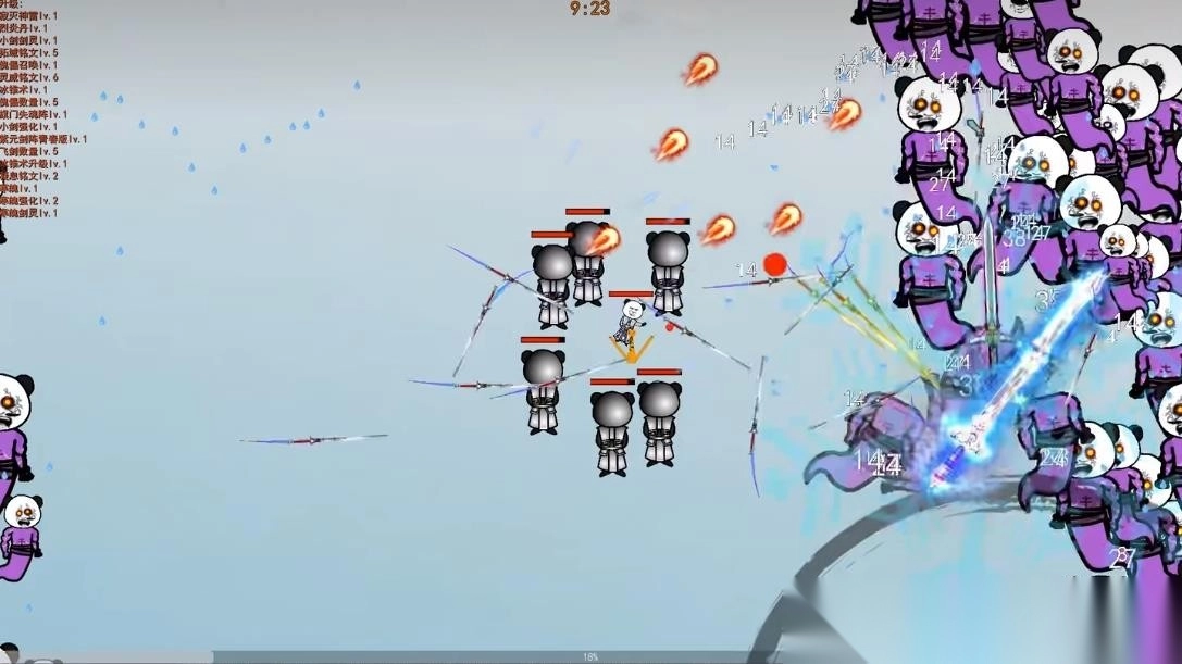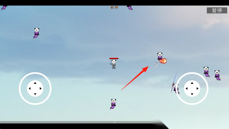 2、发现紫色熊猫敌人发射的【火焰弹(标有5)】,快速移动闪避,同时瞄准敌人射击。