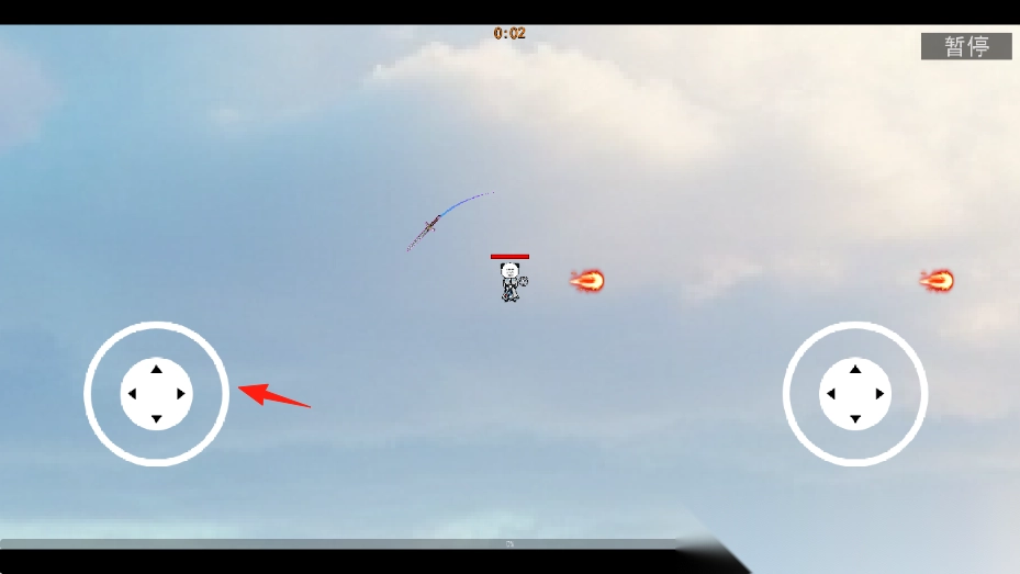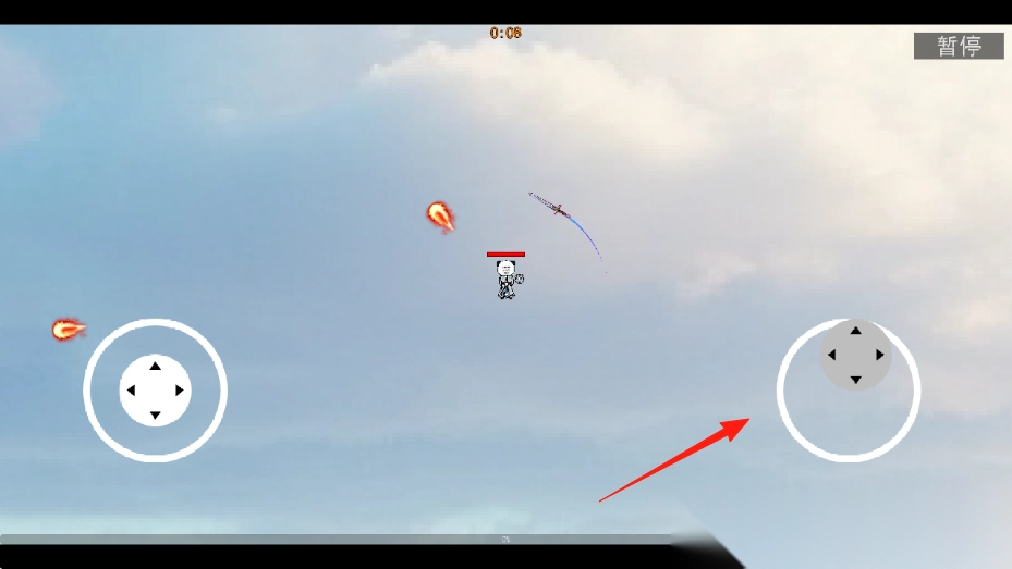 1、通过【左侧方向摇杆】控制角色移动,躲避火焰弹,调整位置接取武器道具。