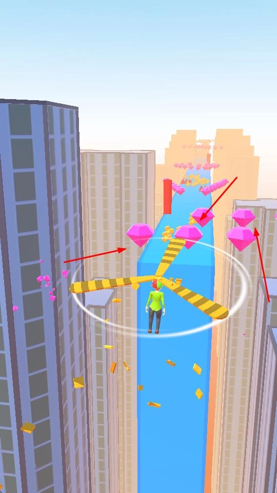 3、收集元素以延长时间:在关卡里,玩家能够收集使桨叶增长的元素,这些元素不仅可以延长桨叶的使用时长,还能提升其效能。与此同时,玩家还可收集宝石,宝石能够为后续解锁内容以及提升能力提供助力,进而增强跑酷的目标性。