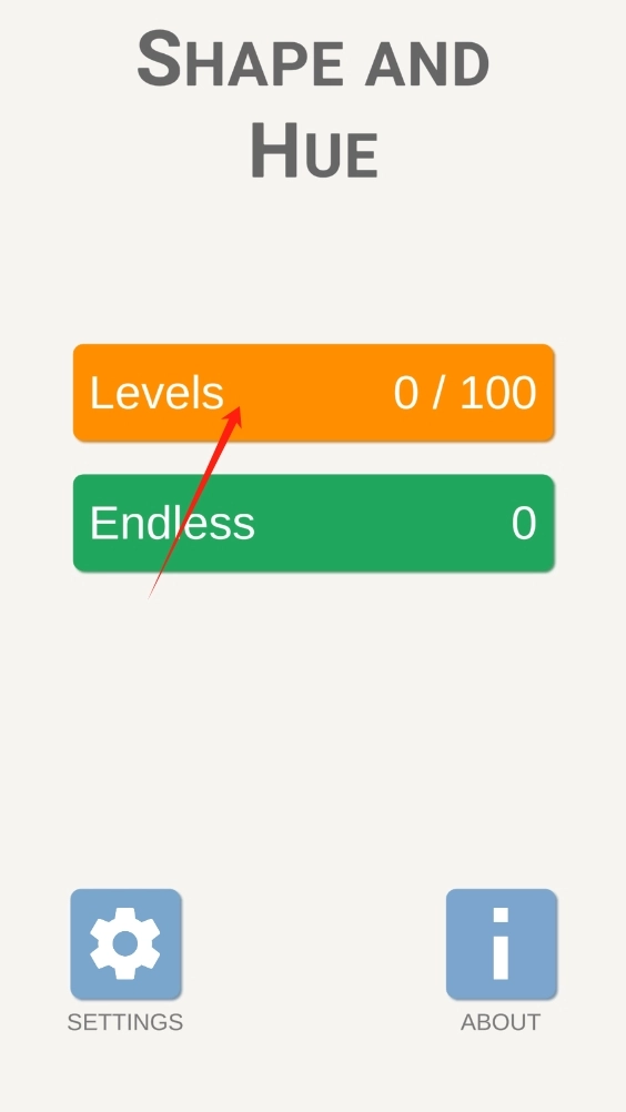 1、在Shape-and-Hue启动界面,点击Levels,进入关卡选择,开启拼图挑战,点击开始游戏。