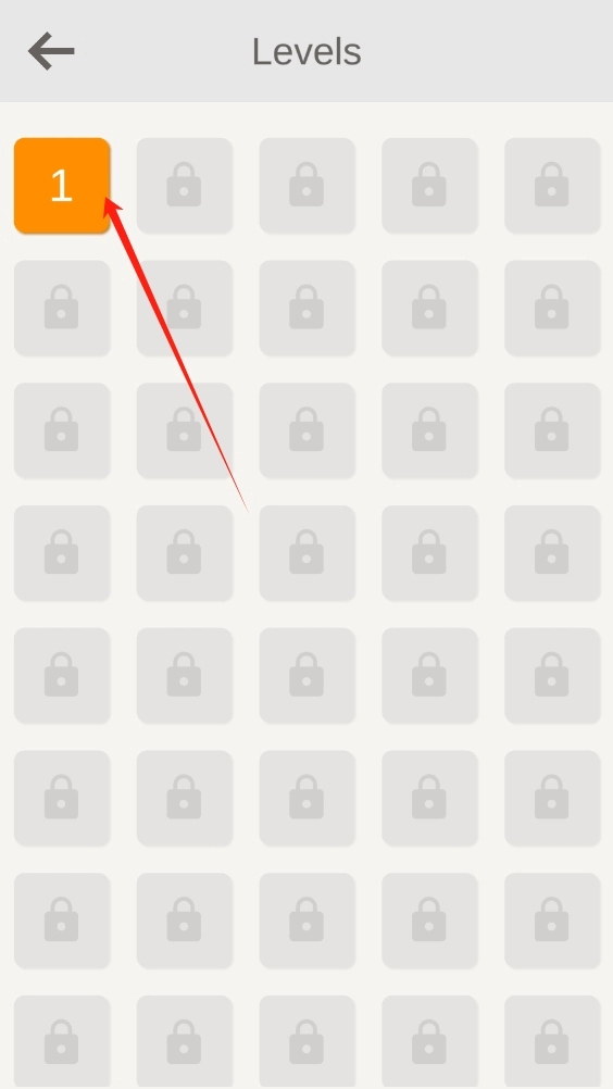 2、关卡选择界面,点击1,进入第一关,开始基础拼图练习,熟悉游戏玩法,点击选择关卡。