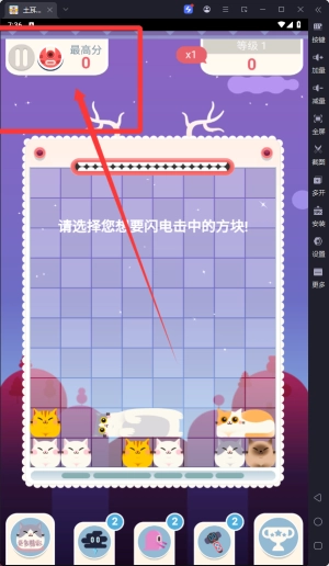 1. 玩家需通过水平滑动屏幕来移动猫咪方块,把相同颜色的方块排列成整行,填满一行后就能实现消除并获取分数。