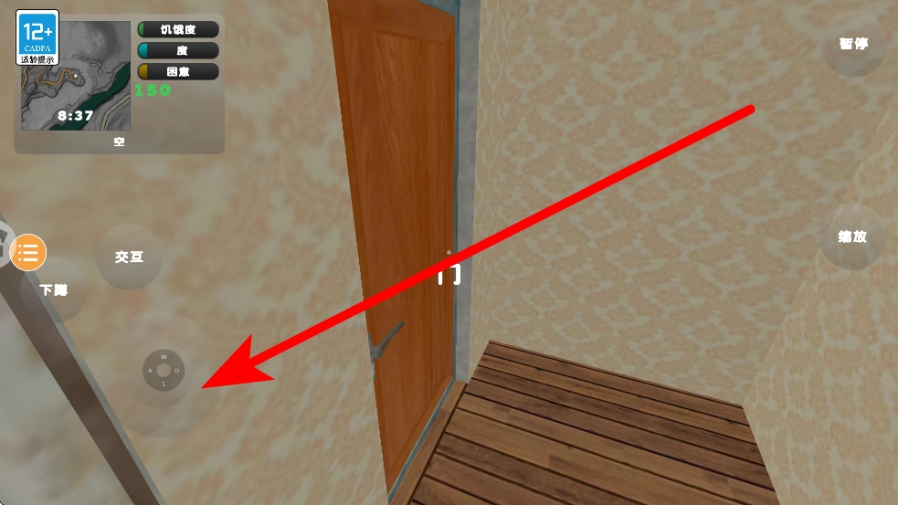 2、踏入场景后,借助左侧的操控按钮操控角色的移动方向,并灵活加以调整,使角色能够在房间之类的场景中来回穿梭,逐步靠近需要修理的车辆。