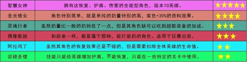 推荐理由:此角色优点不算多,但其单体奶量极为出色,玩家战力达到10万时,奶量能轻易突破1万,堪称平民玩家的专属奶妈。