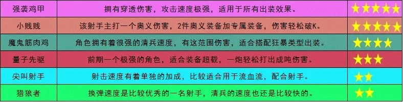 推荐理由:这是游戏里仅有的需手动操作的英雄,伤害极高,攻击范围也极为广阔,堪称完美,毫无疏漏。在这款游戏中,除队长外,其他角色皆为自动攻击,只会锁定距离自身最近的敌人,因而很多时候,玩家会感觉攻击方式不尽如人意,而此时,就凸显出这个角色的重要性了。