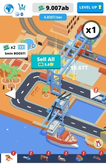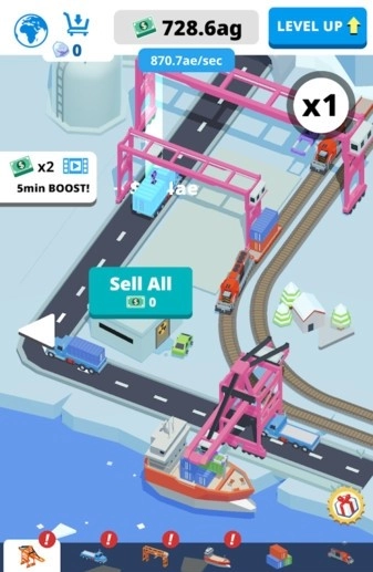 2. 轻点游戏屏幕,添加集装箱并装满货物,接着运输这些货物,完成升级,进而赢取胜利!
