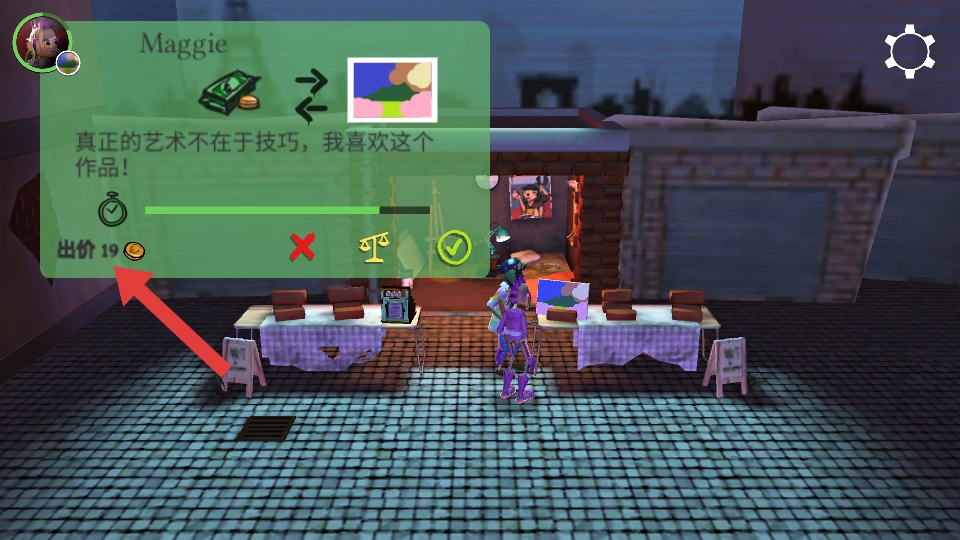 3、租金处理与场地升级:游玩过程中会定期从收入里扣除租金,玩家需要把握时机多卖画来提升收入,这样便能够解锁更为豪华的绘画场地。场地升级之后,画作价值会进一步提高。