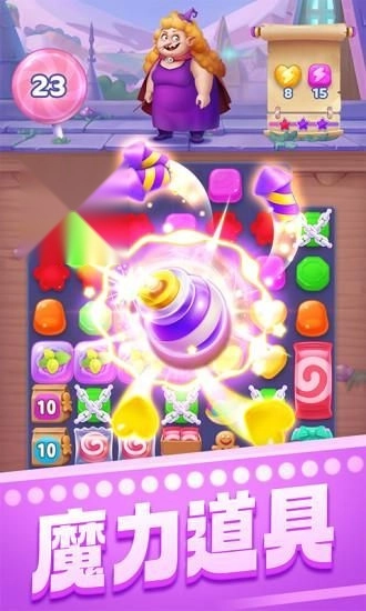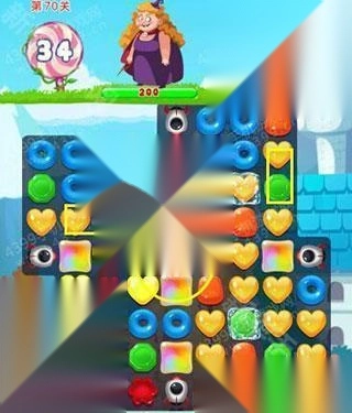 关卡任务:通过消除黄色与绿色的糖果,来打败拥有200生命值的胖女巫。