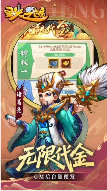 给新玩家准备了丰富福利,注册游戏即能领取吕布,还可获得大量代金券。