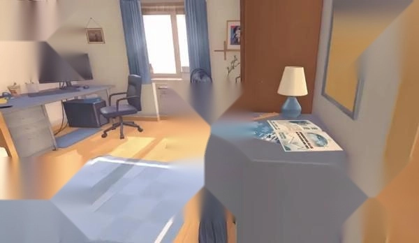切换至更低的版本,能发现房间内建模的面数大幅减少,就连米塔的材质也缺失了,你需要在一片浮空的错误提示中,帮她恢复外观。