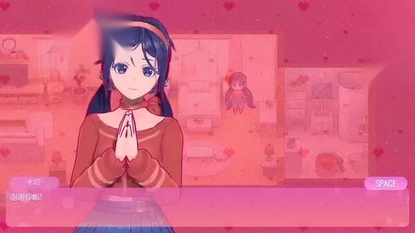 一位扎着俏皮双马尾,笑容如蜜般甜美的3D美少女小人,蹦蹦跳跳地向你展开笑颜,热情打招呼。随后,她脸上泛起一抹羞涩,轻声询问,能不能帮她整理一下房间呢?