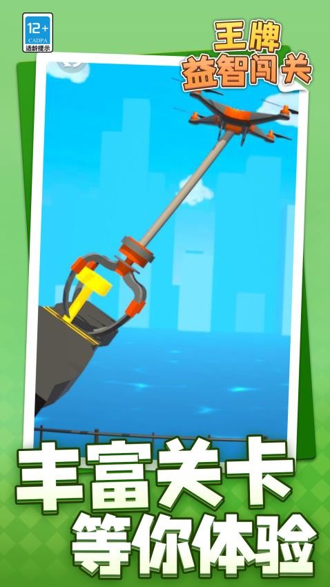 王牌益智闯关是一款围绕无人机操控展开的休闲益智闯关游戏,它把无人机操作与考古知识进行了巧妙结合,能让玩家收获别具一格的模拟探险体验。在游戏里,玩家既要操控无人机,又要操作挖掘机,于各类环境中执行任务并完成挑战。玩家需借助操控无人机来完成诸如高空运输、地面施工、资源收集、化石清理以及文物拼装等一系列任务。该游戏设有多样化的关卡,每个关卡都具备独特的环境与任务目标,难度从易到难,逐步递增。