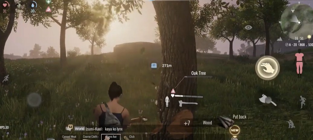 3、玩家能够通过使用斧子砍伐树木,从而获取木材,以助力自己制作工具。
