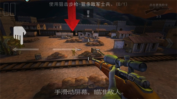 5、在此处需完成游戏所给出的任务,运用狙击步枪,狙杀敌方士兵,随后点击继续游戏。