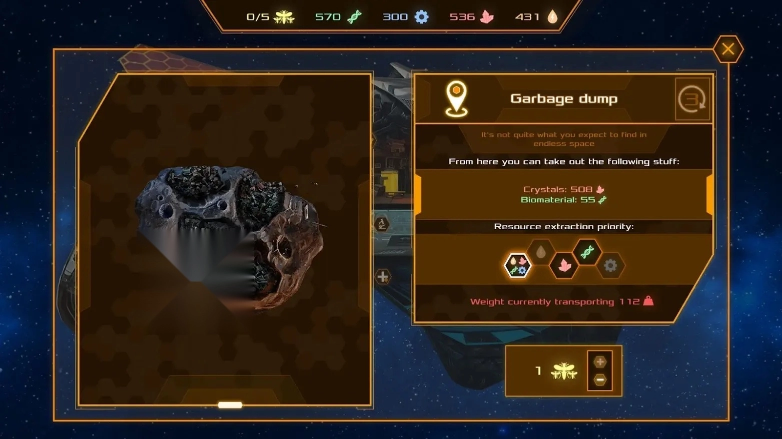 4. 去探寻广袤且神奇的宇宙,寻觅更多的资源点,你得收集资源用以改进并维护你的飞船。