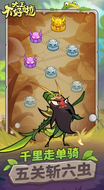《大王不好啦》是一款别具创新的三国卡牌放置类游戏,它巧妙地把昆虫元素与三国武将相结合,塑造出幽默诙谐的昆虫拟人化三国英雄形象。该游戏以轻松的放置养成为核心玩法,玩家能够自由招募三国英雄,并借助装备、天赋、翼纹、神器等多元养成系统持续提升战力。游戏支持全程自动战斗与多倍加速,让玩家轻松畅玩不费精力。《大王不好啦》还拥有丰富的副本挑战模式,像河岸冒险、地穴探险以及过关斩虫等,大幅提升了游戏乐趣与策略深度。