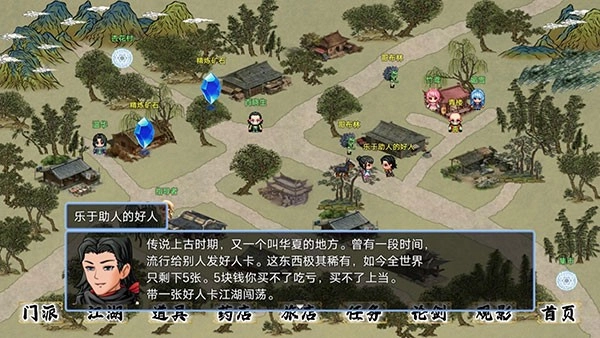 1、这款游戏巧妙融合像素、古风、RPG等多元游戏元素,为您带来别具一格的刺激玩法。在这里,您能从丰富的门派中自由选择加入,潜心修炼武功,逐步提升角色等级与能力,尽情领略与众不同的武侠魅力。