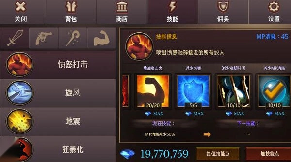 技能可分为基础技能与解锁技能。基础技能着重强化基础属性,解锁技能则是那些酷炫且可操作释放的技能。