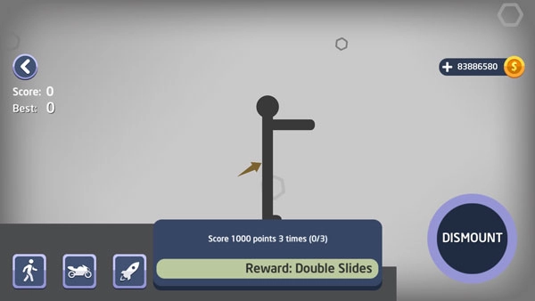 3、长按左下角的DISMOUNT,即可操控火柴人的行动。