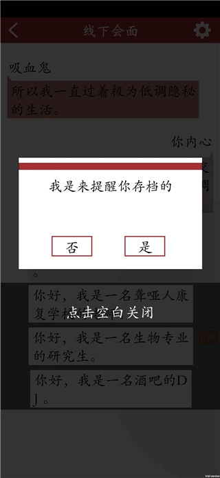 3、记得存档呀,要是不小心错过关键剧情,还能通过读档重新体验。