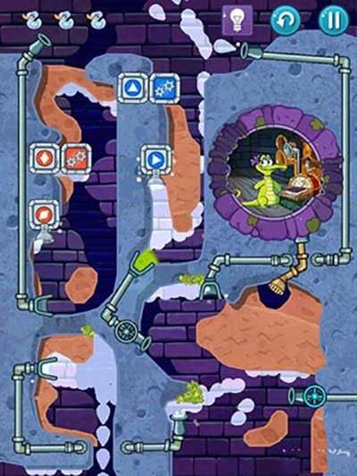 2、小顽皮的故事 小顽皮是一条生活在城市下水道里的小鳄鱼。它跟别的鳄鱼不太一样,充满好奇心,对人友善,还喜欢在辛苦工作一天后舒舒服服地洗个热水澡。然而,水管出现了些状况,所以小顽皮需要你帮忙,将水引到它的浴缸里!