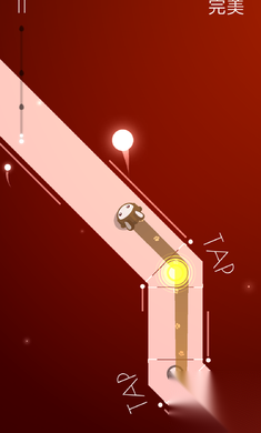3、双重遵循路径与节奏:严格依照跑道路径以及音乐节奏,借助歌曲里的关卡返回功能,防止生命浪费,通过单指点击来完成节奏挑战。