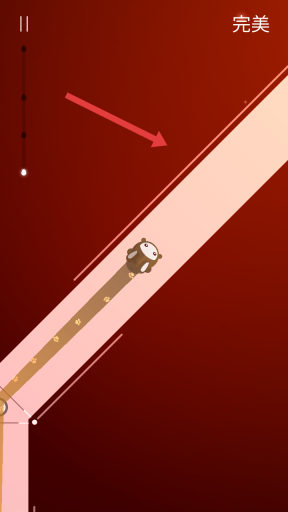 2. 在游戏中,操控角色顺着轨道移动,依照节奏点击屏幕,力求获得右上角【完美】的评价,同时要避开红色箭头所警示的危险区域。
