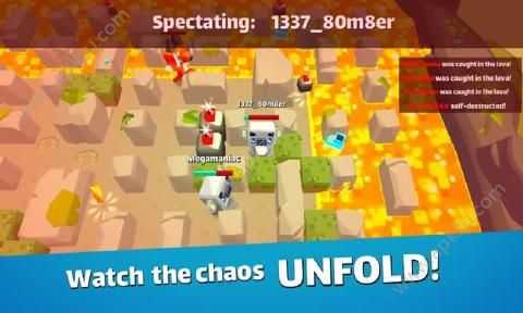 2、3D画面与上帝视角:运用3D精美动画风格的画面,并结合上帝视角的设计,使玩家能够清楚地把控战场全貌,观察岩浆范围的缩小以及对手所处位置,从而更利于制定攻防策略。