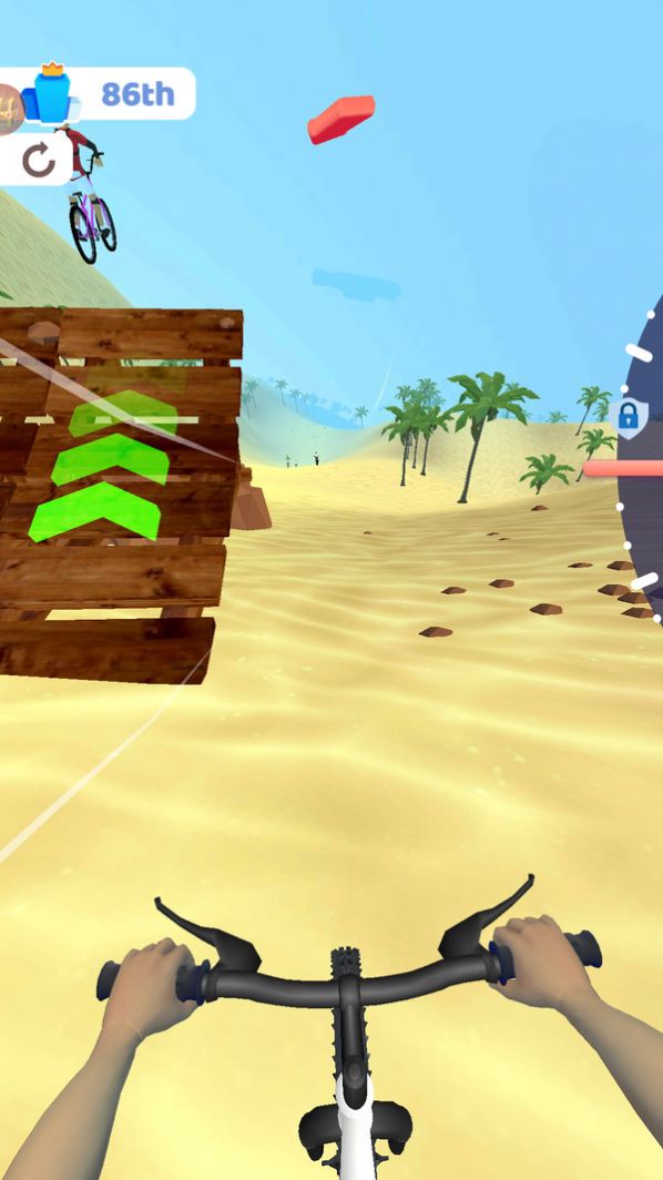 1、玩家可借助触摸屏或者摇杆,对自行车的前进、加速及转向进行操控,以灵活应对赛道上形形色色的障碍。