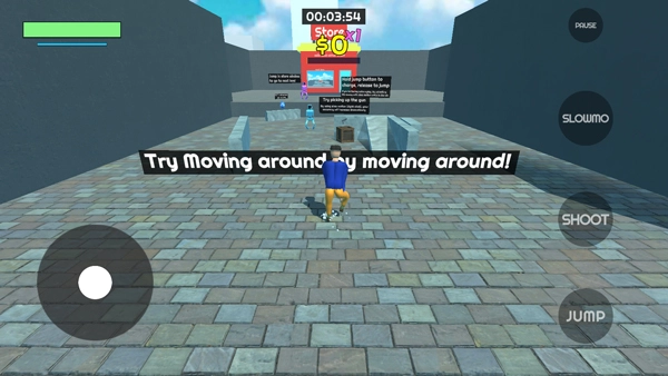 5、进入游戏后画面如图所示,屏幕左侧用于控制移动,右侧是攻击、跳跃等键位。当成功操控卡尔森抵达商店,就能进入下一关。