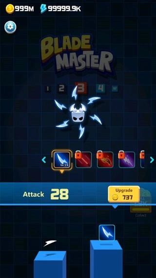 《Blade Master》是一款备受欢迎的休闲趣味闯关小游戏。其游戏界面极为炫酷,以竖屏形式呈现,玩家仅凭单手就能操控。在游戏里,玩家要操控角色借助身旁旋转的刀片,去击杀周围的敌人。游戏设有丰富的关卡,随着关卡的推进,难度逐步提升。玩家能够持续闯关,解锁更多武器与角色,增强战斗力。