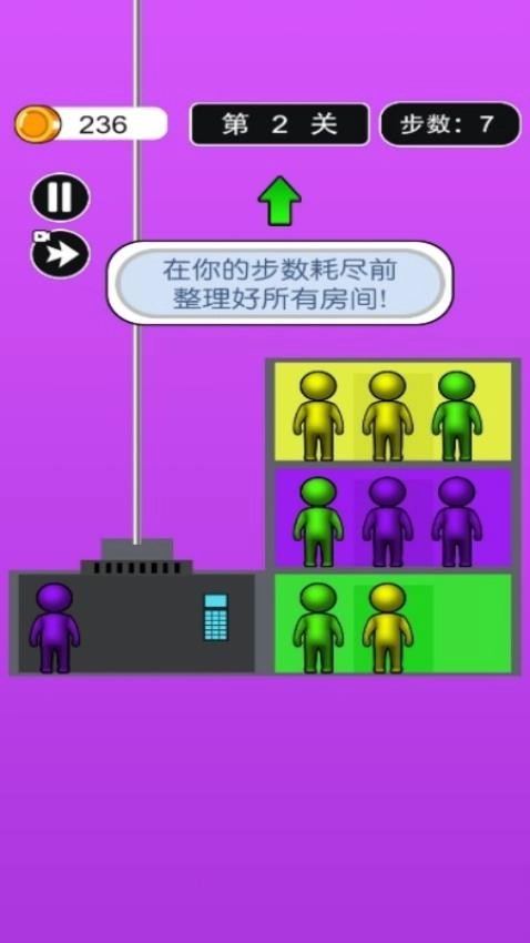一款玩法超有趣的小人闯关游戏——电梯大分派。在这个充满趣味与挑战的游戏里,你得做好充分准备,把人们送到指定楼层。游戏目标是在电梯运行时,巧妙选择搭载或卸下与楼层颜色相符的小人,保证他们精准停留在对应的楼层。