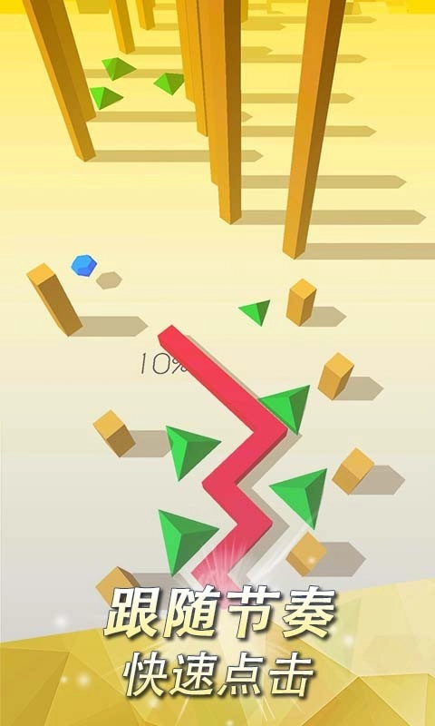 玩家只需跟随节奏,持续进行经典点击操作,灵活加以控制,避开障碍物,就能顺利闯关。