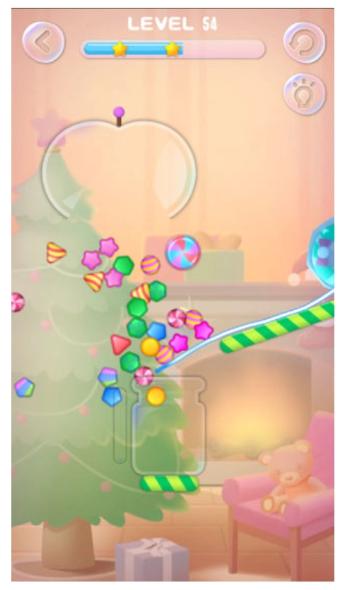 2、每个关卡皆具备独特的挑战与难度,只需通过画线的方式,把各类糖果放置到合适的瓶子里。游戏操作简单,却能让您收获更多星星,十分考验玩家智慧。在闲暇时刻,您可轻松加入其中,它将为您带来无尽趣味。