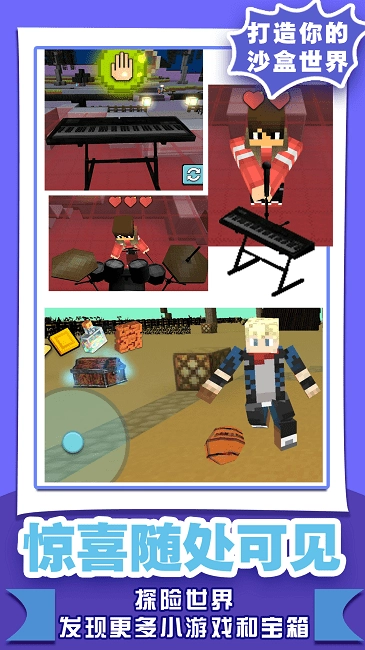 于沙盒世界里,实现各式各样的伟大创造,其中涵盖不同的主题模式。