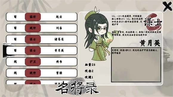 4、猛将:针对盾兵与长枪兵这类敌人,能额外造成30%的伤害。 5、统帅:以自身作为核心,为周边的友军提供增益效果。