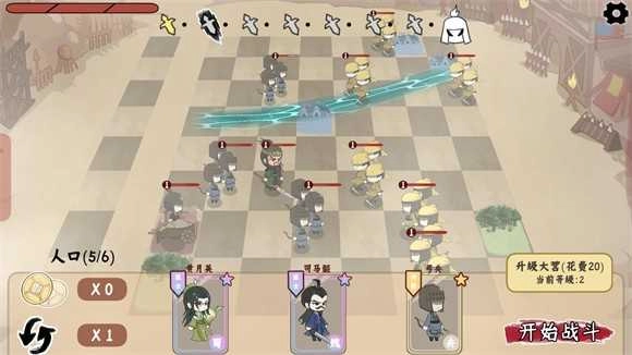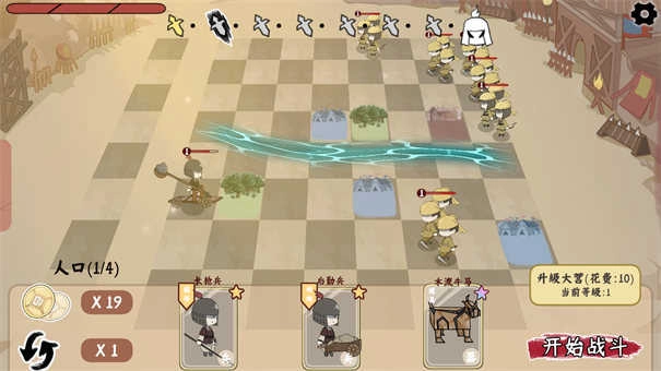 3、将小兵放在棋盘上后可以点击开始战斗进行闯关,棋子会自动攻击敌人,击败所有敌人后就可以通关。