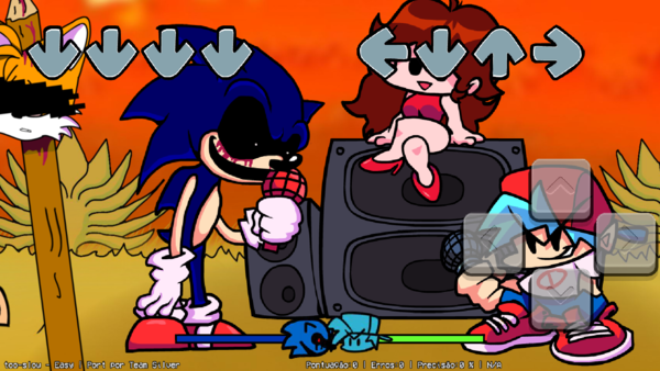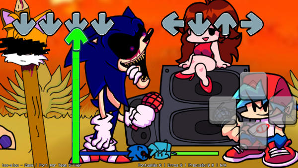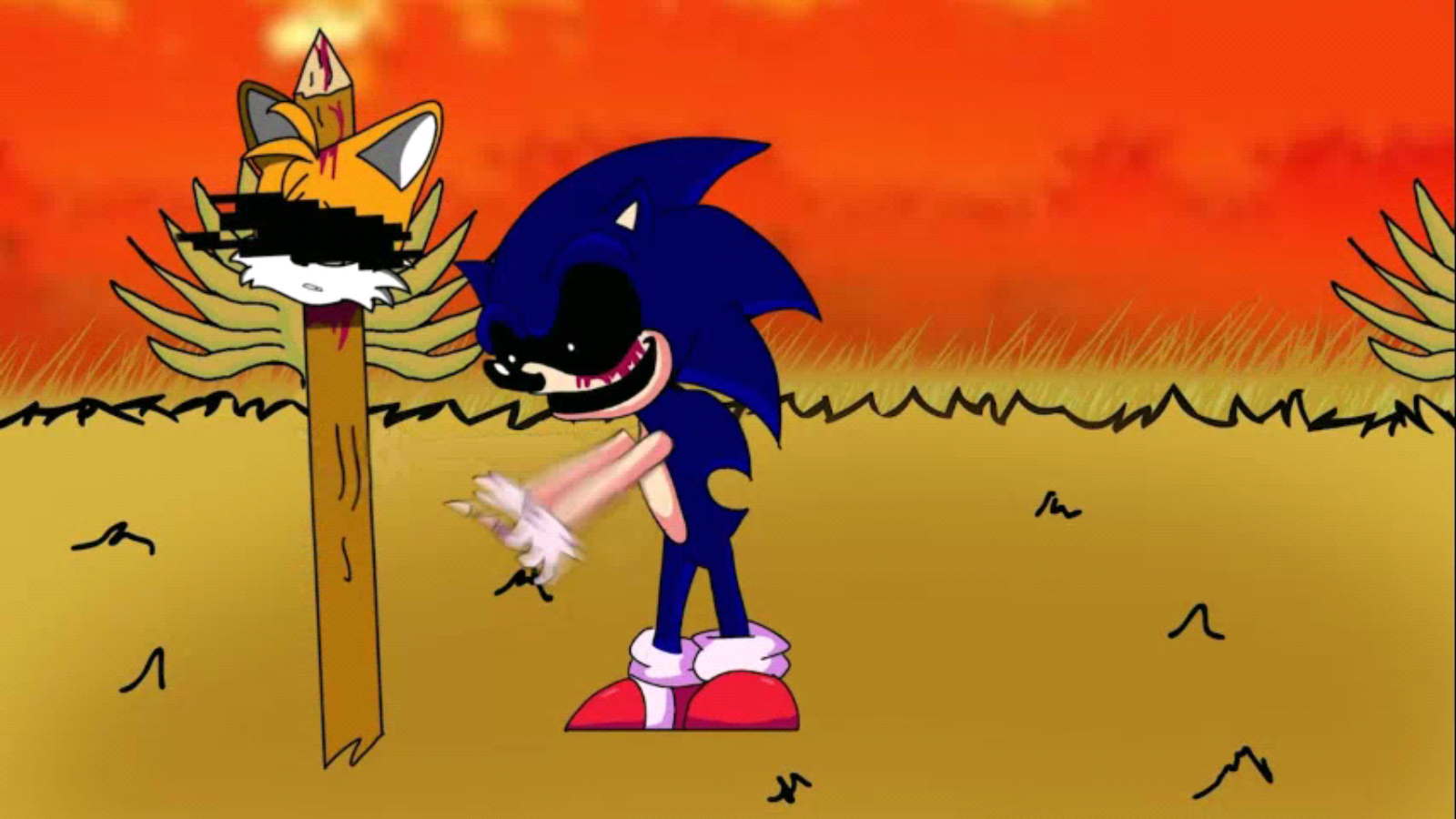 Sonic.exe才刚把Tails的脑袋插在木杆上,一转头便瞧见前来挑战的BF,紧接着,Sonic.exe将麦克风变成了红色。
