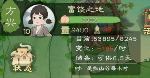 其变化受到当下采集食物效率的影响。在无人采集食物的情况下,变化数值应为8245÷24 = 343.5/时。采集的食物包含浆果、野菜、桃子等,这些是前期获取食物的主要途径。不过,在解锁种地功能后,采集食物的方式便不再起作用。但要留意囤积约2000个浆果,用于开启食物增产的科技,同时留存部分野菜用来制作青菜面(后续主食会更替为大米饭和蛋炒饭),部分桃子可制作成桃泥(若没有开通基金)。