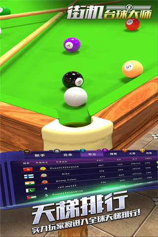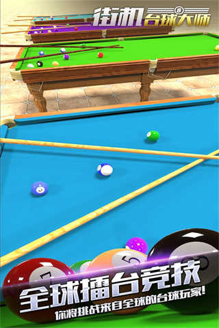 向全球各地网络上的朋友们发起挑战,在3D台球世界中展开对战,让你从一介草根,轻松蜕变成为台球明星。