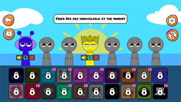 2. 把屏幕下方的音符拖拽至角色头部,角色会即刻演奏相应的旋律,体验互动式音乐创作。 3. 有些音符带有视频图标,要观看广告才能解锁。