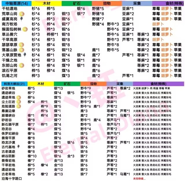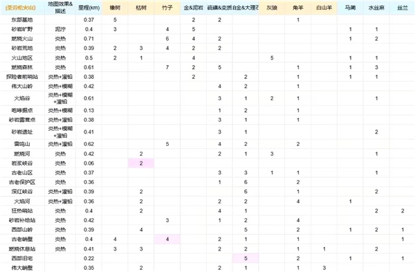 丛林、沼泽以及火山等区域: