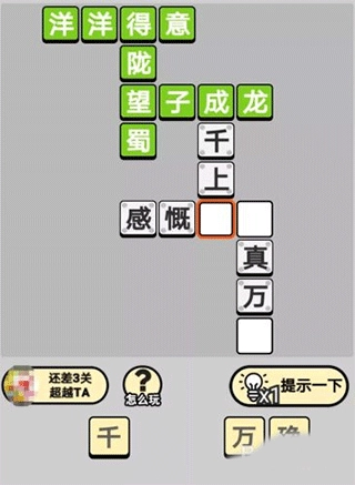 2、操作简便,只需把屏幕下方的字填入空格,组成正确的四字成语就行。