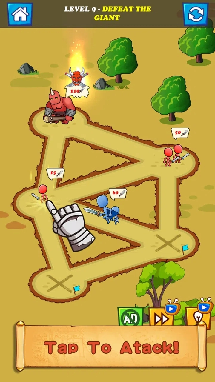 火柴人英雄攻防战是一款以火柴人为题材的策略塔防类游戏。在游戏中,玩家可通过画线来布置塔防,集结自己的队伍,迎接一波又一波的攻击,守护好自己的城池,并将所有来犯之敌全部击败。