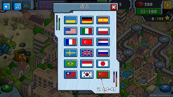 3、进入后,寻找到中国国旗,选中它,游戏界面便会变为中文界面。